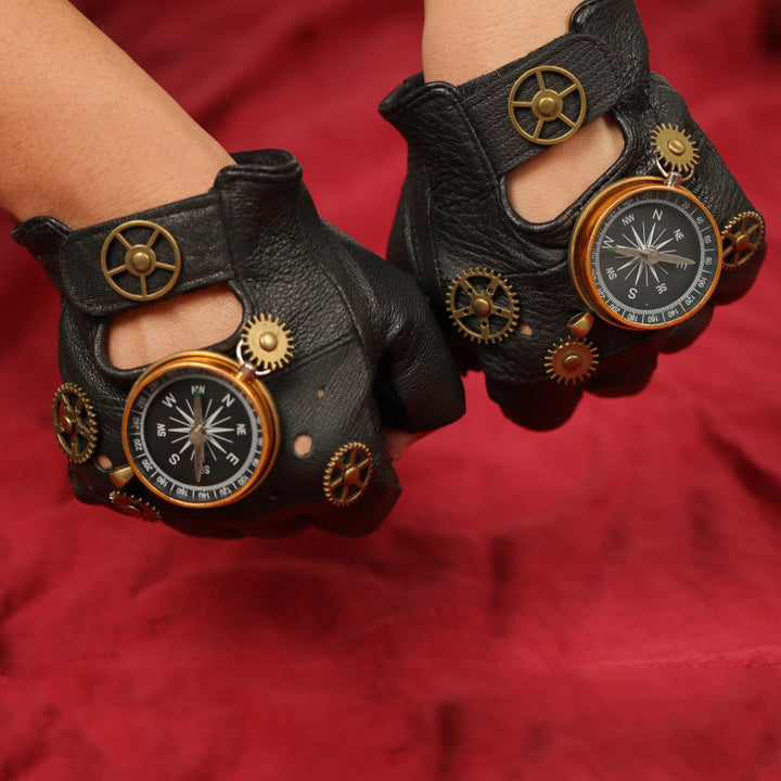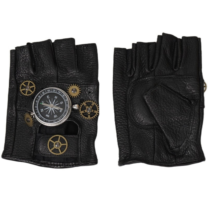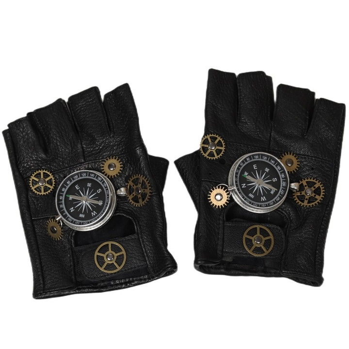 European And American Steampunk Leather Gloves Gear Half Finger Gloves Compass Retro