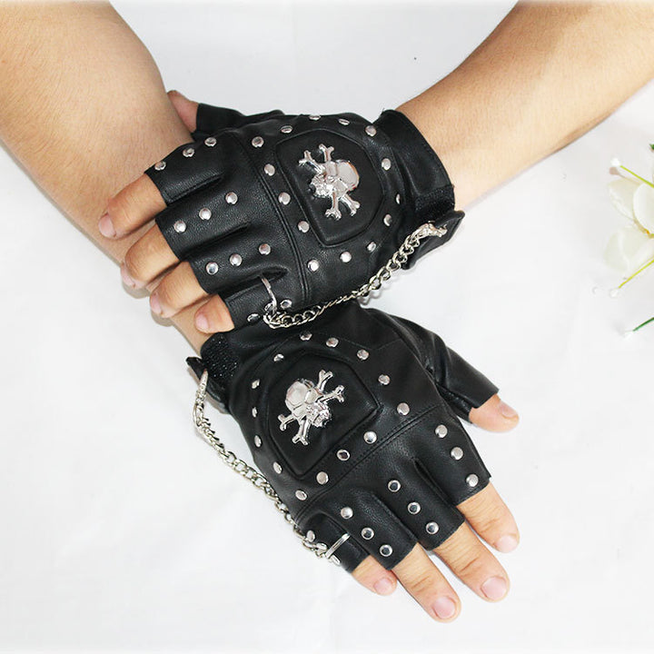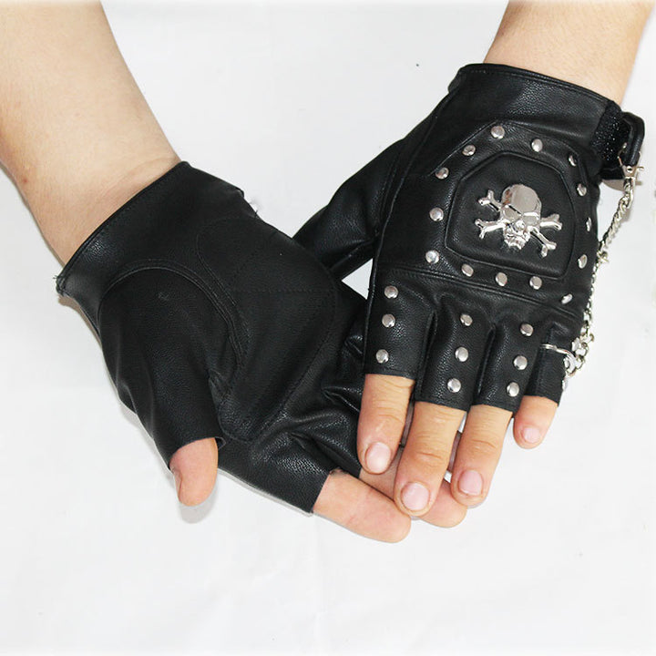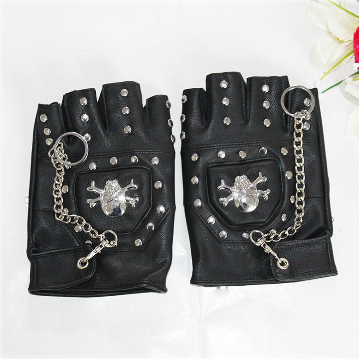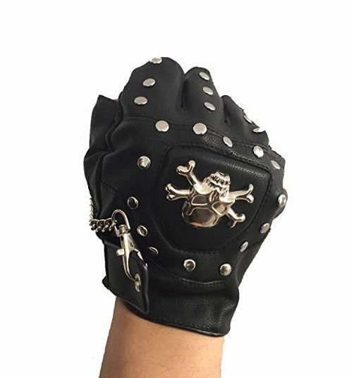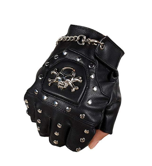 - Cool Design - Fingerless design; Punk style skull, studs and chain decoration.