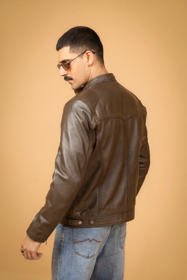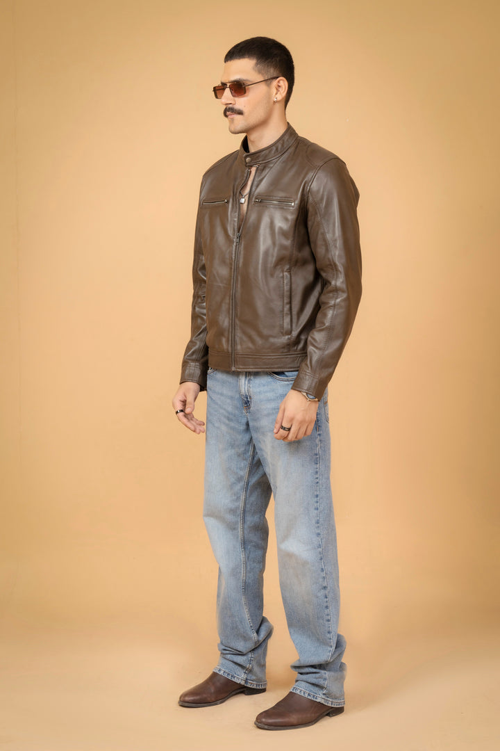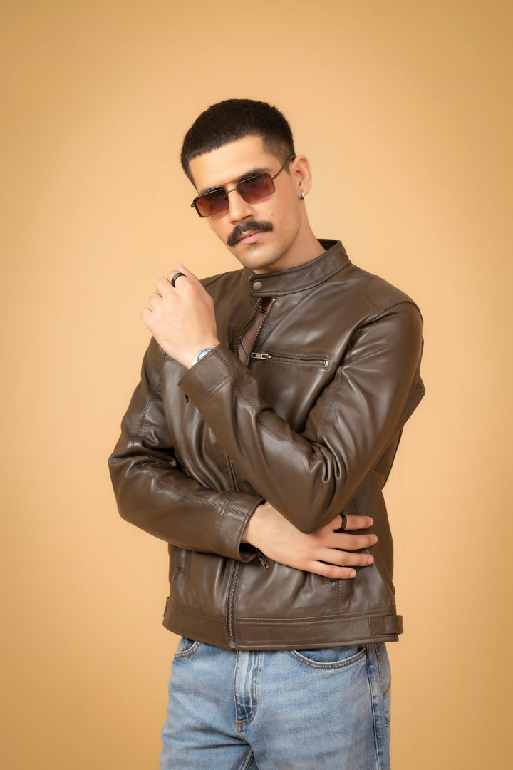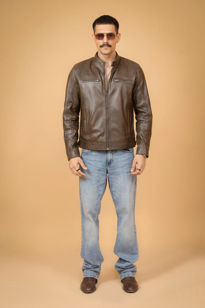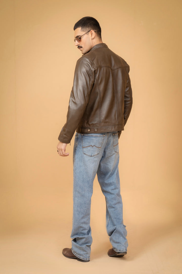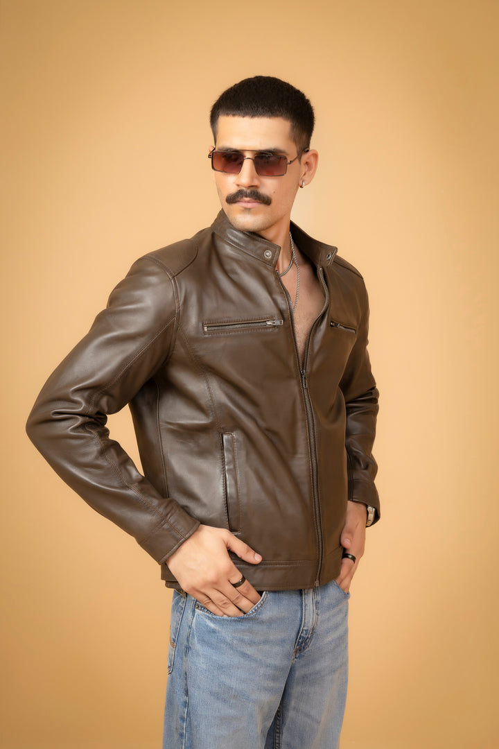 Premium Lambskin Leather Nevada Wax Jacket for Men – Slim Fit Biker Style | Zesoul